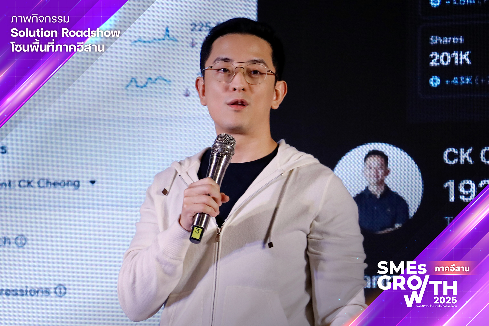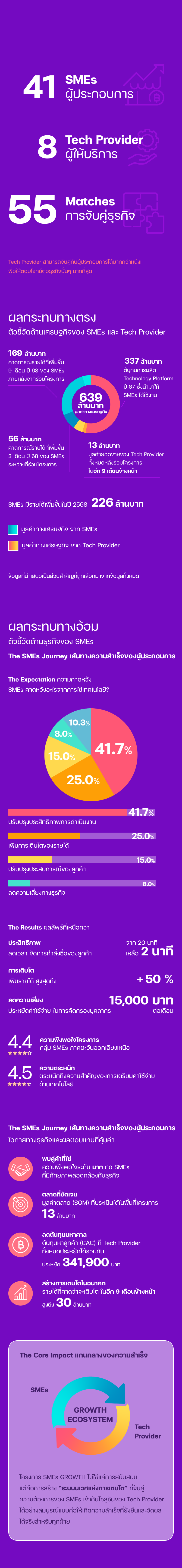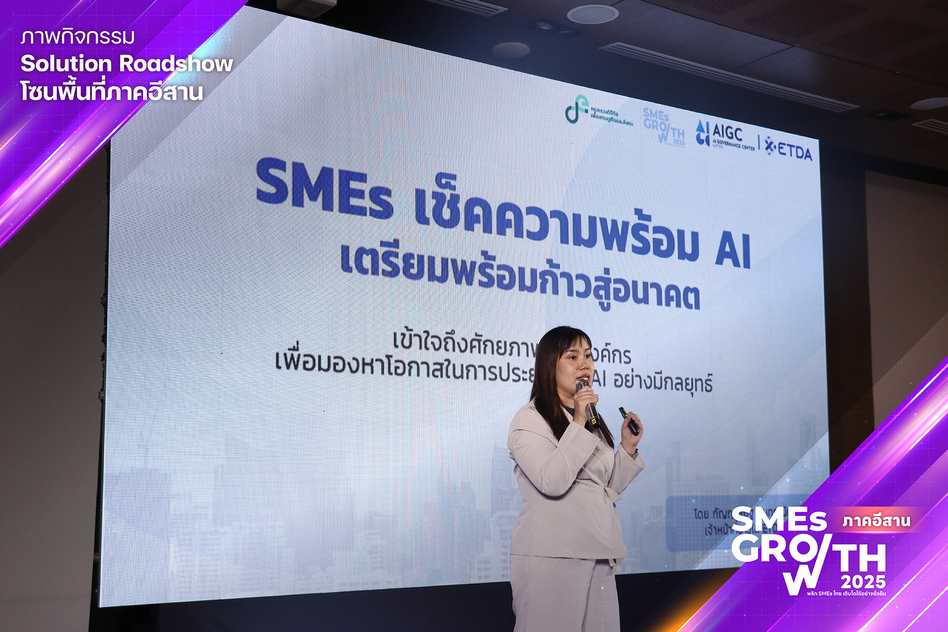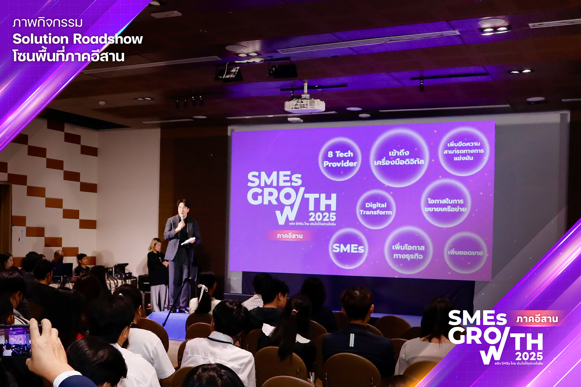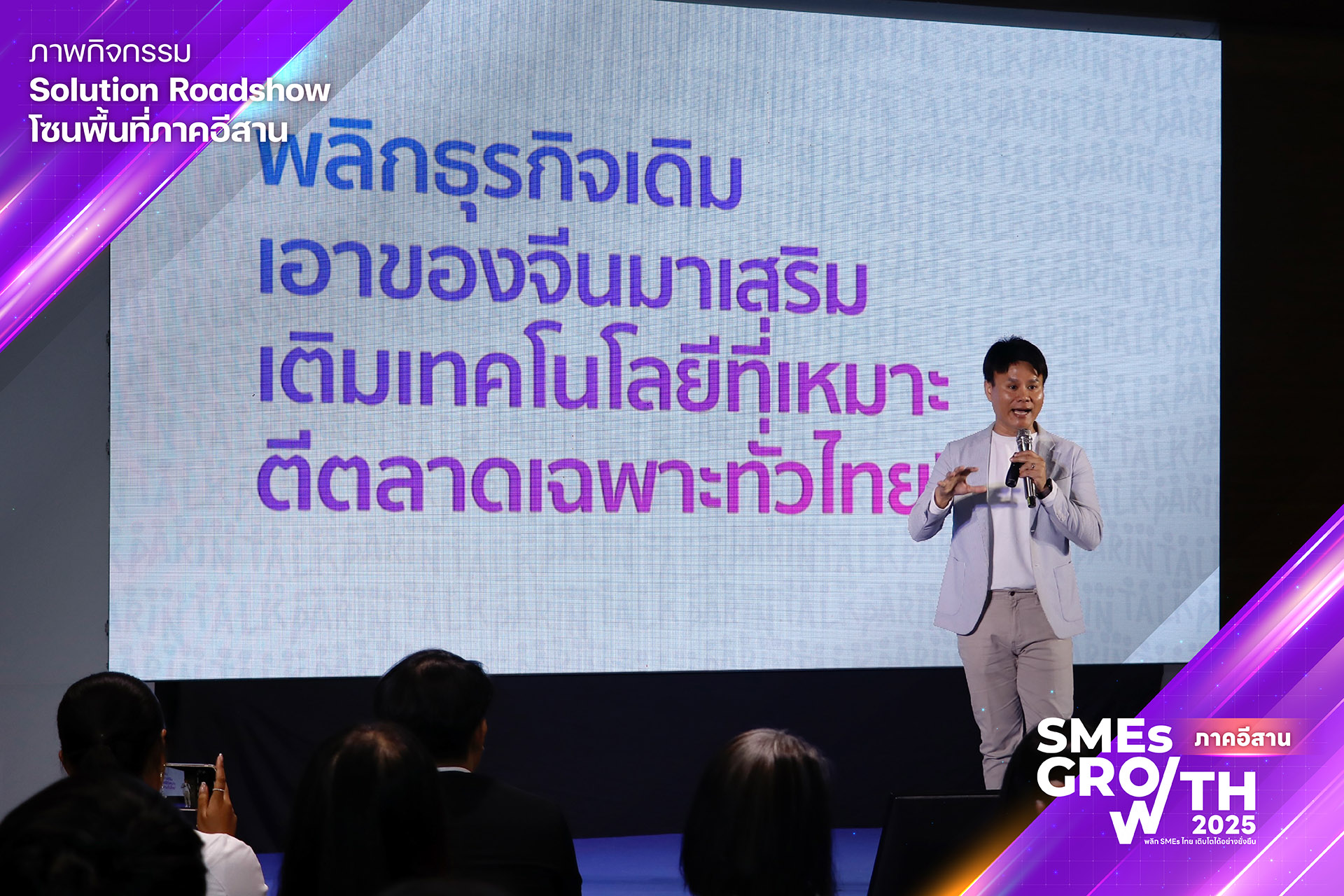 กิจกรรม “SMEs GROWTH” จึงเกิดขึ้นอีกครั้งในปีนี้ เพื่อต่อยอดความสำเร็จจากปีที่แล้ว โดยมุ่งเน้นการพัฒนานวัตกรรมดิจิทัลที่ตอบโจทย์ความต้องการของ SMEs ในพื้นที่มากยิ่งขึ้น ทำให้เกิดการยกระดับและต่อยอดความสามารถทางดิจิทัลของ SMEs อย่างไม่หยุดนิ่ง ซึ่งจะทำให้เศรษฐกิจดิจิทัลในพื้นที่ภาคกลางและภาคอีสานเติบโตอย่างยั่งยืนภายใต้แนวคิด พลิก SMEs ไทยให้เติบโตอย่างยั่งยืน